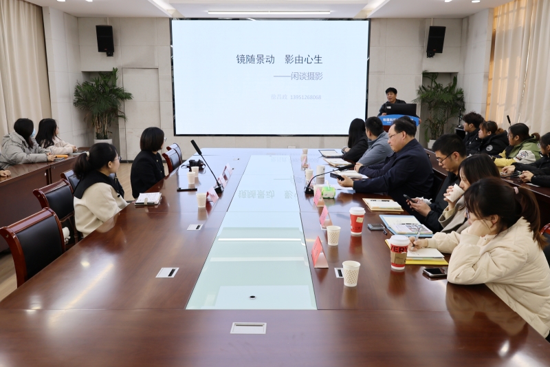 徐昌政以“镜随景动 影随心生”为主题,围绕“什么是合格的新闻图片”、“摄影的基础知识”、“怎么拍好照片”等问题作讲座。他结合自己的新闻作品,强调了优秀的新闻图片在“人物神态、画面构图、色彩”等方面的要求;针对摄影基本知识,具体剖析了进行摄影的构图、光线技巧及要点;根据“热爱、追求、付出、经验”等关键词,建议同学们建立见微知著的政治高度、爱党敬业的工作态度、永葆初心的学习态度、入木三分的思考深度、洞若观火的观察锐度以及博采众长的知识宽度。