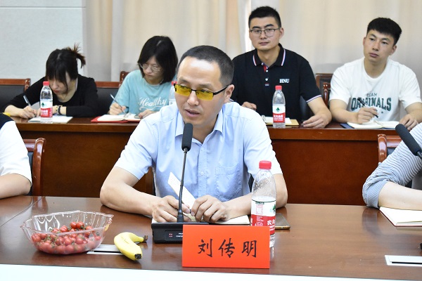 刘传明代表学院向与会毕业生代表对学院毕业季工作的理解、配合与支持表示衷心感谢,并向毕业生们提出三点希望:一是希望他们立足社会需求,利用好身边校友资源,多途径、多渠道就业;二是希望他们饮水思源,加强与低年级学生的交流,提升他们对优秀资源的把握能力;三是希望他们勤奋学习、奋力拼搏,不断提高终身学习能力,更好地应对未来的职业挑战。