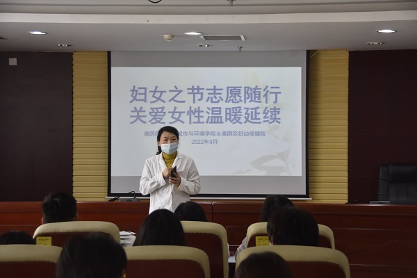阳春三月,万物生辉。为迎接第112个国际“三八”妇女节的到来,进一步营造关爱女性、尊重女性的良好风尚,城环学院于3月5日赴淮阴区妇幼保健院举办“妇女之节志愿随行 关爱女性温暖延续”主题活动。本次活动由团委副书记王千千主持,19、20、21级部分发展对象和积极分子参加。