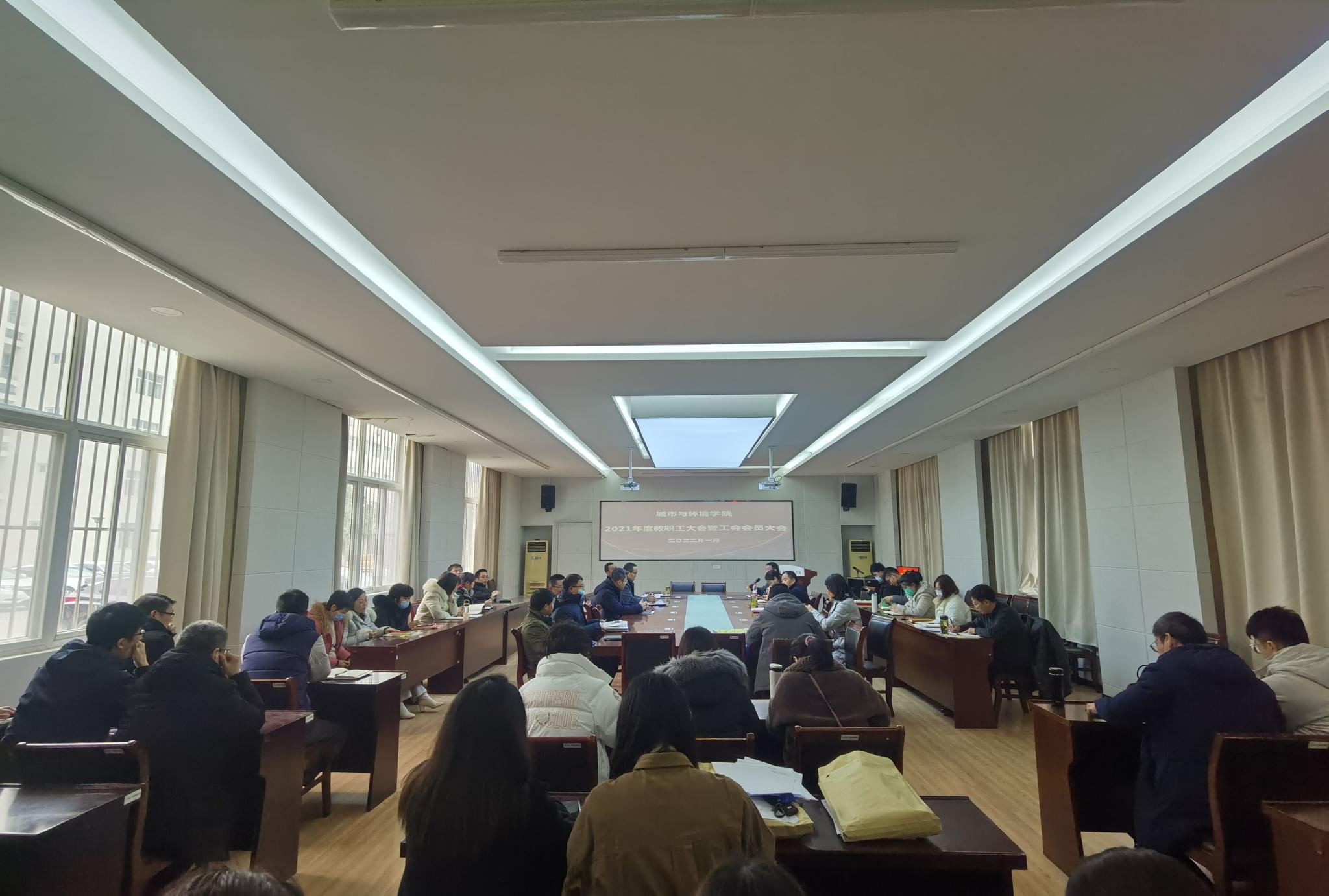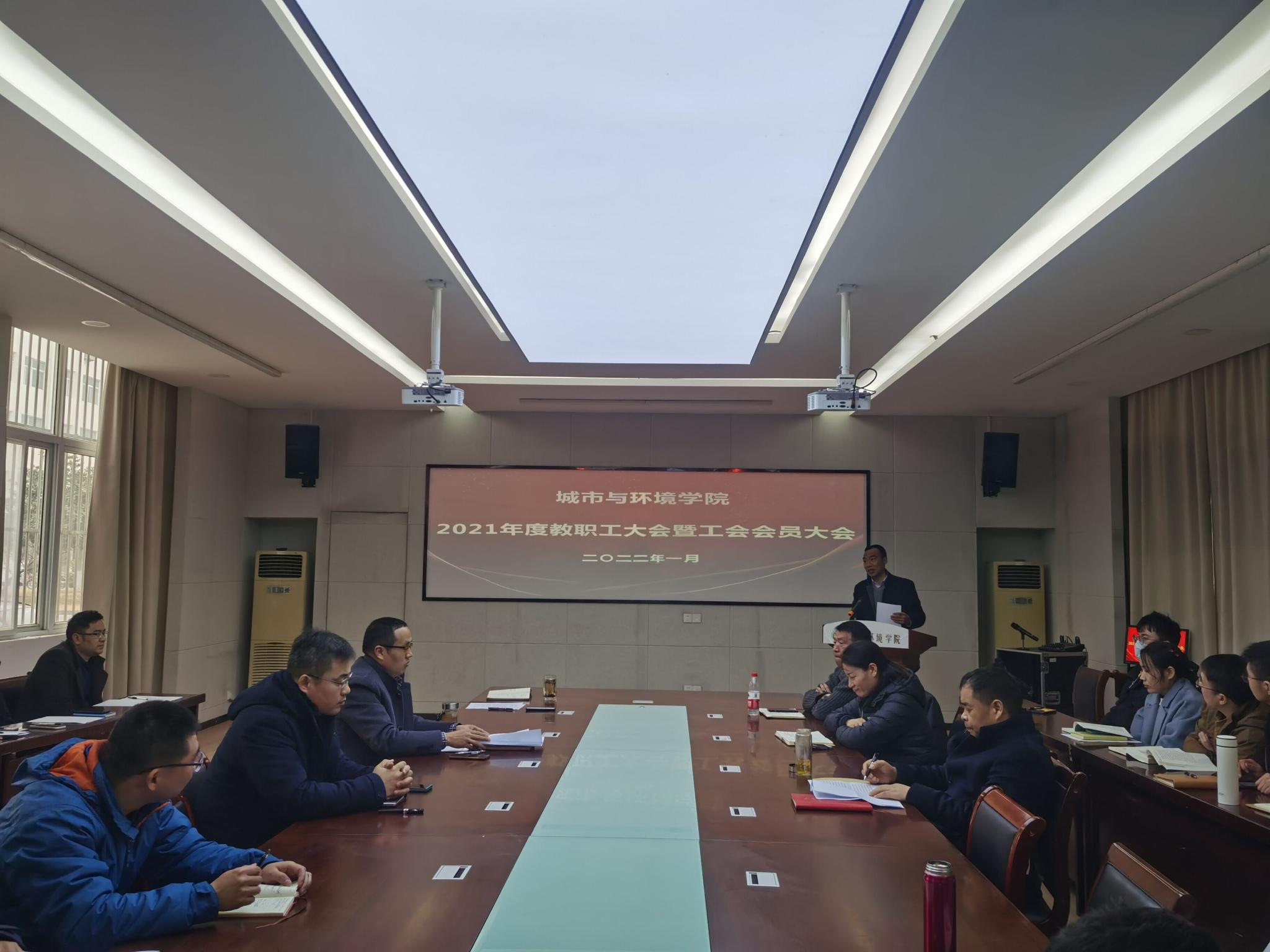 1月4日下午,城环学院在101会议室召开2021年度教职工大会暨工会会员大会,会议由姜于同志主持,全体教职工参加。