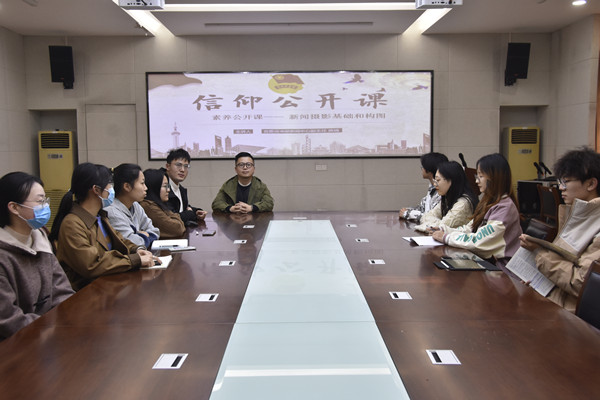 公开课上,唐瑀首先分享了自己的摄影经历,鼓励同学们大胆拿起相机,感受摄影魅力。随后,他介绍了常用的摄影机器,从光圈、快门、ISO感光度、构图等方面向同学们介绍了摄影的基础知识。通过展示优质图片,同学们直观了解到摄影的魅力。最后,唐瑀从新闻摄影的几个常见问题入手,列举问题照片事例和自身的拍摄经验,详细介绍指导拍摄会议全景、人物特写等技巧和方法,使同学们受益匪浅。