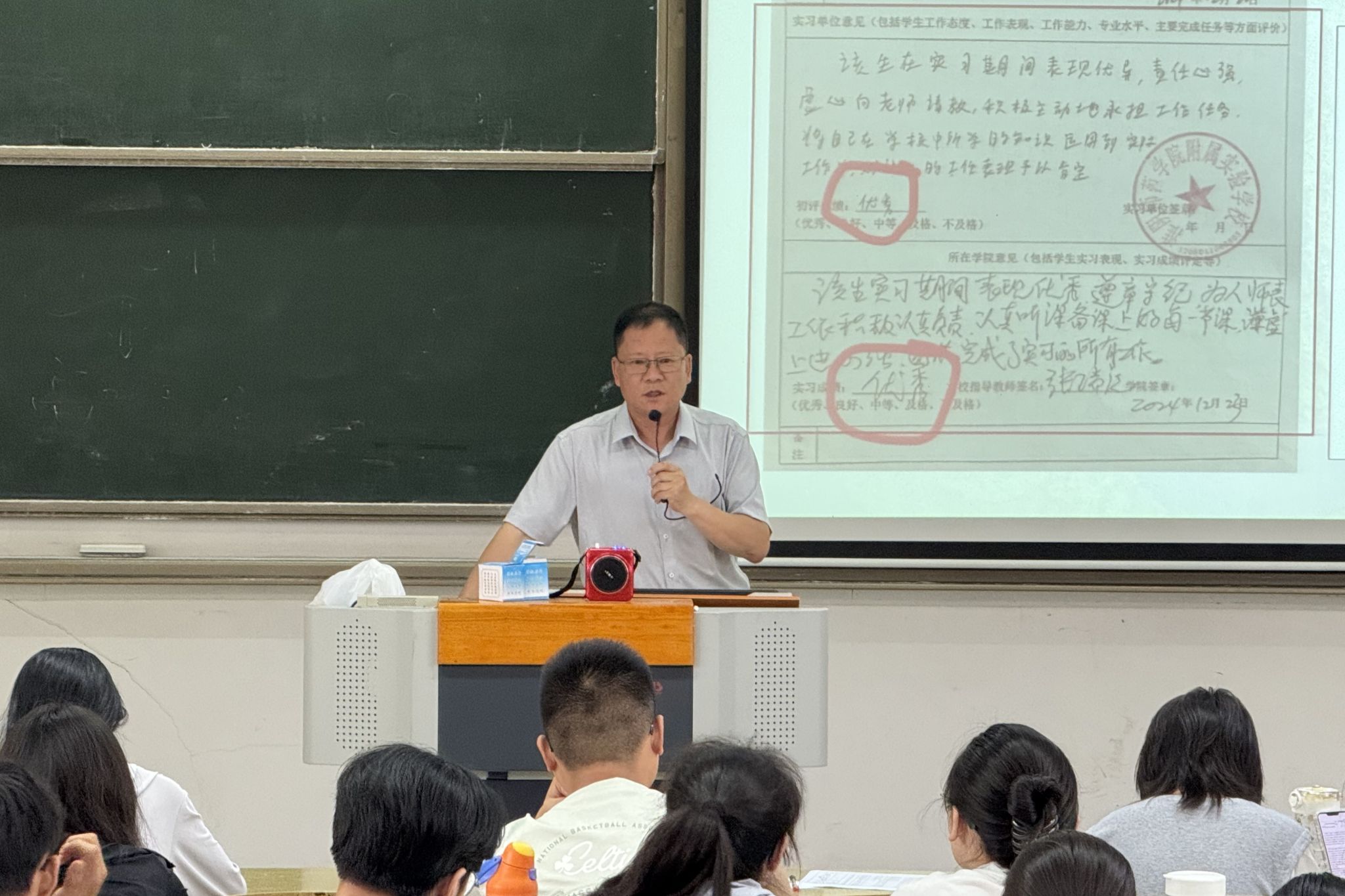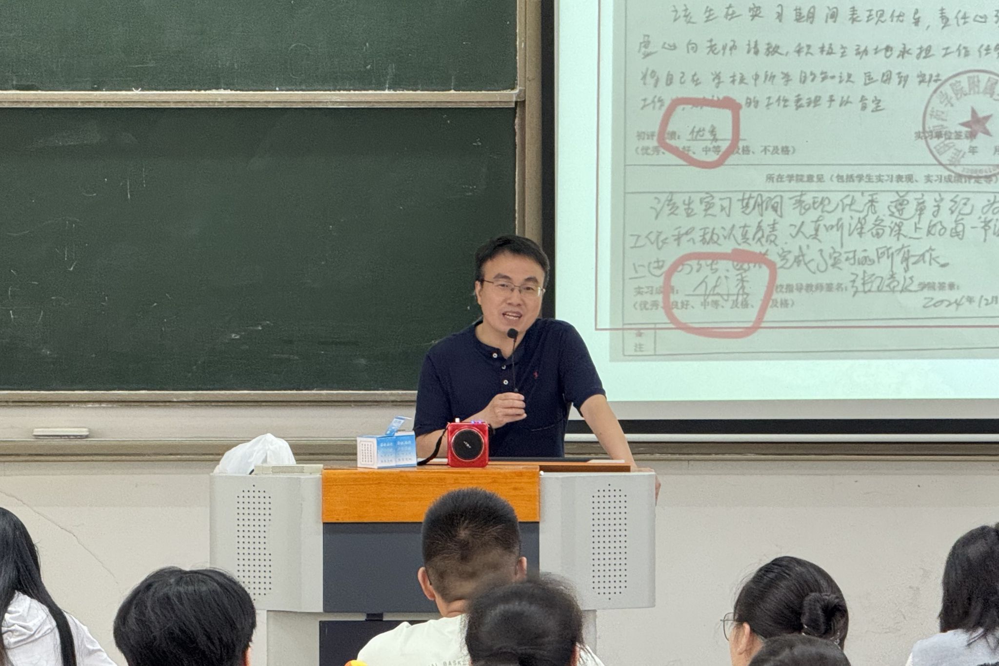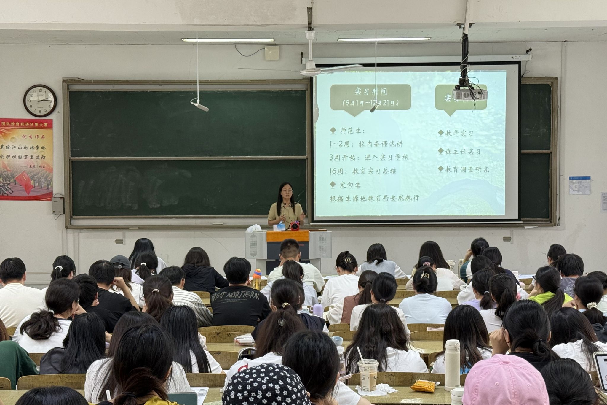 会议伊始,杨雅雪向同学们详细介绍了本次实习的具体安排、要求和相关材料准备。王怀军深入阐述了教育实习的深远意义。他希望同学们能将所学理论有效转化为教学能力,在实习岗位上虚心求教、勤于思考、勇于实践,切实提升自身的专业素养与教书育人本领。申大魁教授则殷切嘱咐同学们务必牢牢把握实习机会,主动要求上课与听课,在真实的教学情境中磨练教学基本功。