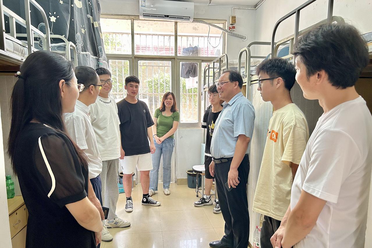 为加深家长对学院的了解,帮助新生更好融入大学生活,学院召开了2023级新生家长见面会。家长们就课程教学模式、学生动态获取途径、专业就业前景等方面与老师们进行深入交流,全方位、多角度、近距离了解学院人才培养情况,增强了对淮师的认同感。学院党政领导、辅导员第一时间走访新生宿舍,与新生及家长亲切交谈,查看住宿环境,详细询问新生入校感受、吃住情况等,细致解答新生关切,并鼓励大家尽快适应大学生活,树立学习目标、合理规划学业、提前谋划就业。