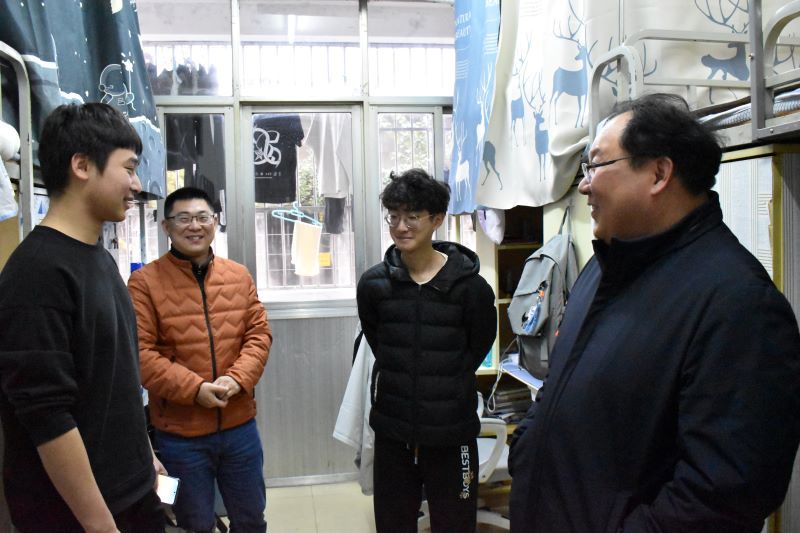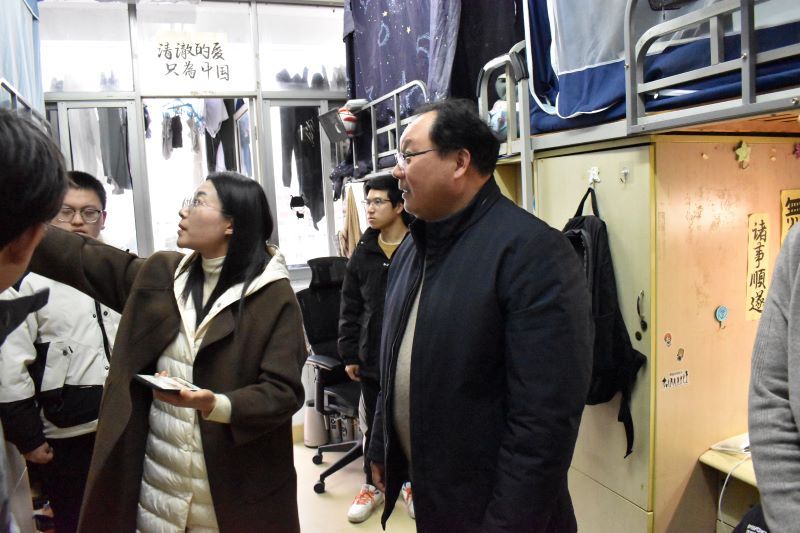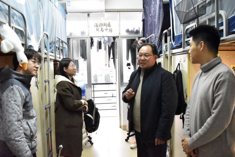 11月29日下午,院党委书记殷成志,党委副书记周亚芳,辅导员陈泉键、吴琼走访学生宿舍,亲切问候学生,高度称赞了学生们的宿舍美化成果。走访过程中,殷成志强调了宿舍卫生与安全的重要性。他提醒同学们,要时刻注意个人卫生与自身健康状况,时刻注意用电安全、人身安全与财产安全。他指出,营造宜居的宿舍环境需要每个人的努力,希望同学们都能够在亲手打造的舒适的宿舍环境里度过大学四年。