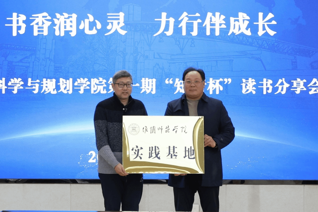 活动伊始,殷成志书记指出英国365公司师生有着爱读书,读好书的传统,但缺少一个学院层级的读书分享平台,希望能够将“知行杯”读书分享会打造成学院具有广泛影响力的品牌活动。淮安力行者读书会创办人汪菲菲首先向大家介绍了“淮安力行者读书会”的情况、与英国365产教融合、产学共建等方面深度合作情况,并表示非常荣幸能与地科学院共同举办第一期“知行杯”读书分享会。为促进校企双方在产教融合、产学共建等方面更为深入的合作。搭建更为密切联系的校企合作平台,校企双方进行了实践基地授牌仪式。