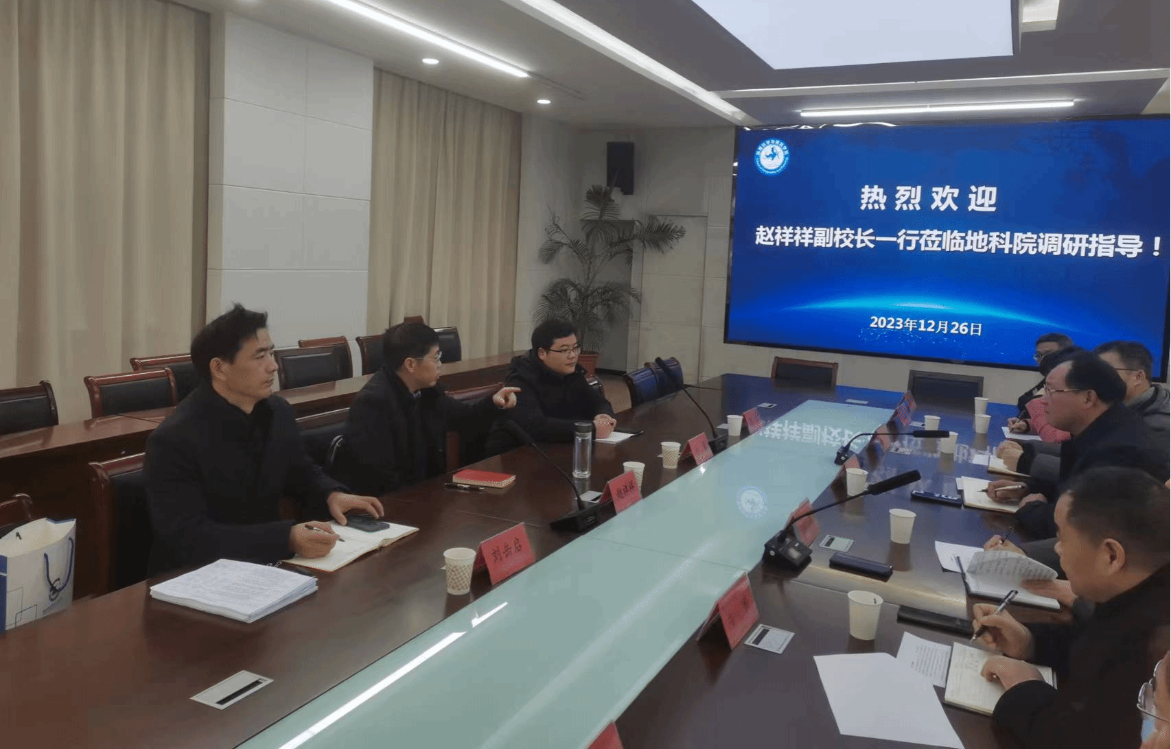 12月26日,副校长赵祥祥莅临我院走访调研,科技处处长刘蒙、人事处副处长苗军和研究生处副处长刘岳启陪同调研。学院党委书记殷成志、院长刘传明、副院长曹蕾和学术带头人、青年骨干教师代表参加了调研座谈。