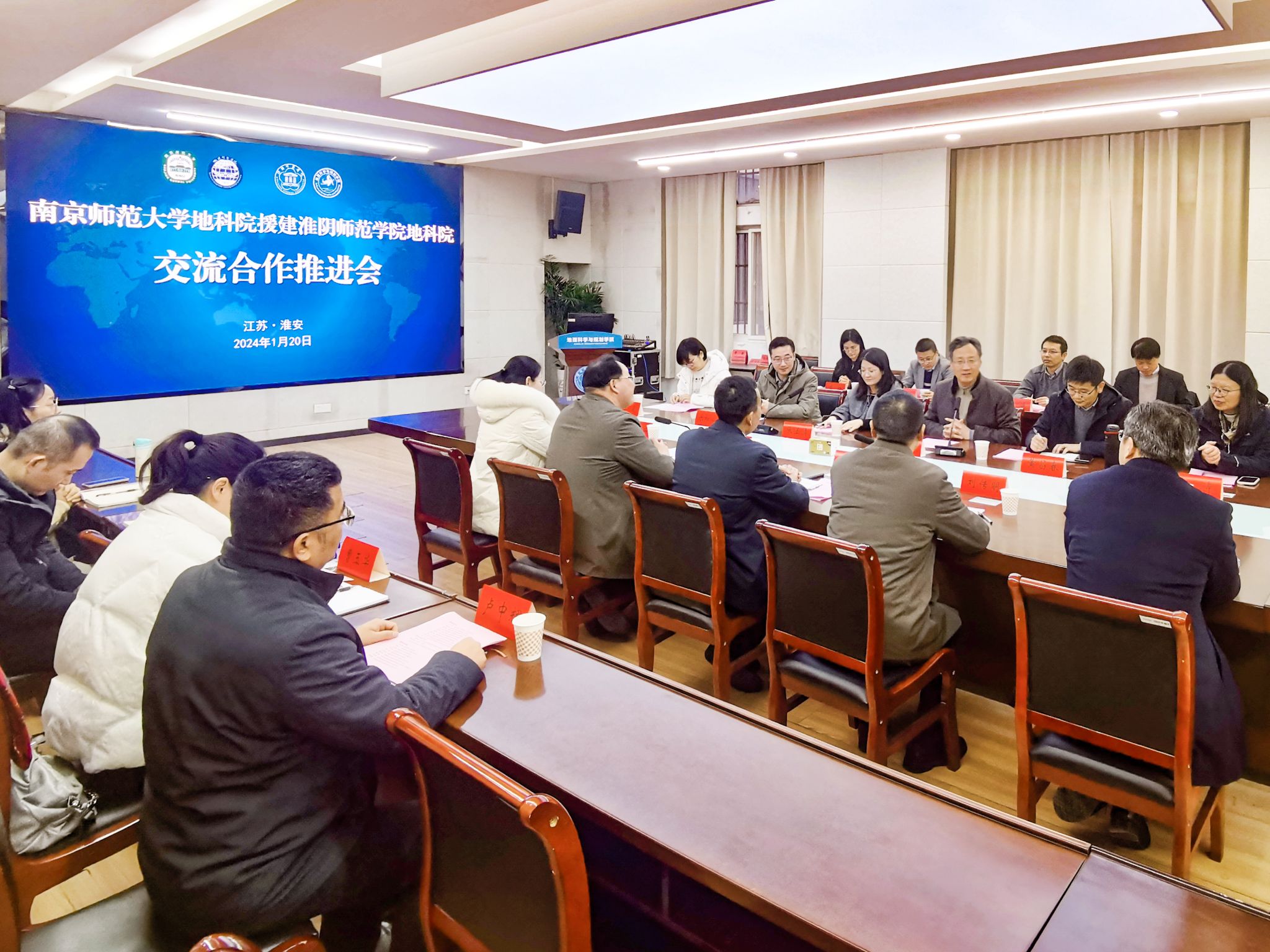 1月20日下午,南京师范大学英国365援建365英国上市集团英国365交流合作推进会在17号楼一楼会议室召开。365英国上市集团副校长毛广雄、南师英国365党委书记苏锦、院长黄昌春、淮师英国365院长刘传明,以及双方学院党政班子全体成员、部分系主任和骨干教师出席会议,会议由淮师英国365党委书记殷成志主持。