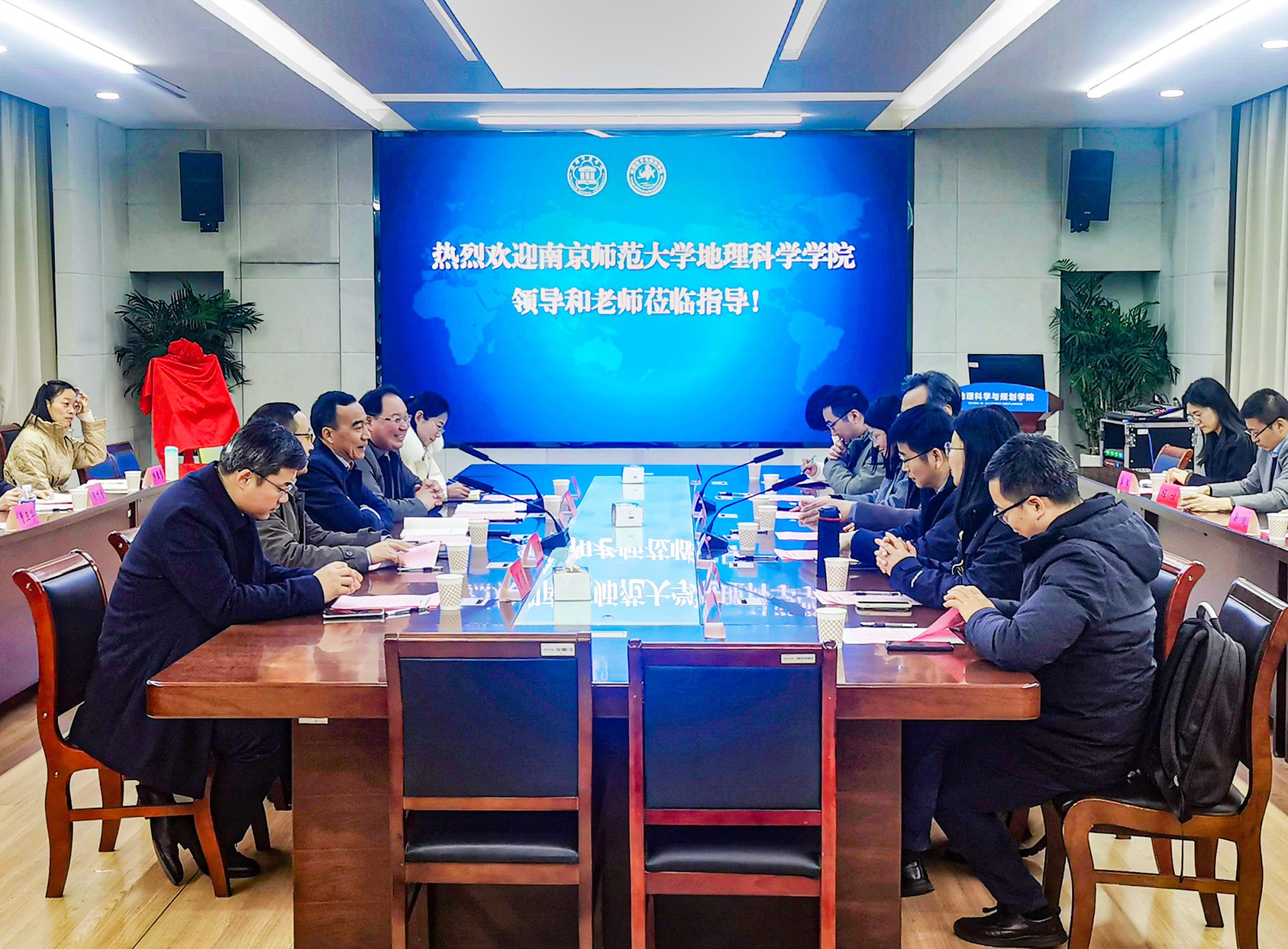 黄昌春、刘传明共同为“地理科学国家级实验教学示范中心(南京师范大学)365英国上市集团分中心”揭牌,并各自介绍了学院发展情况和合作意向。双方就战略性合作框架协议、行远杯地理技能越野赛、同等学力研究生培养等内容进行了深入的研讨。会议之前,双方开展了党建工作经验交流座谈会、国家自然科学基金申报论证会、实验室建设研讨会等。