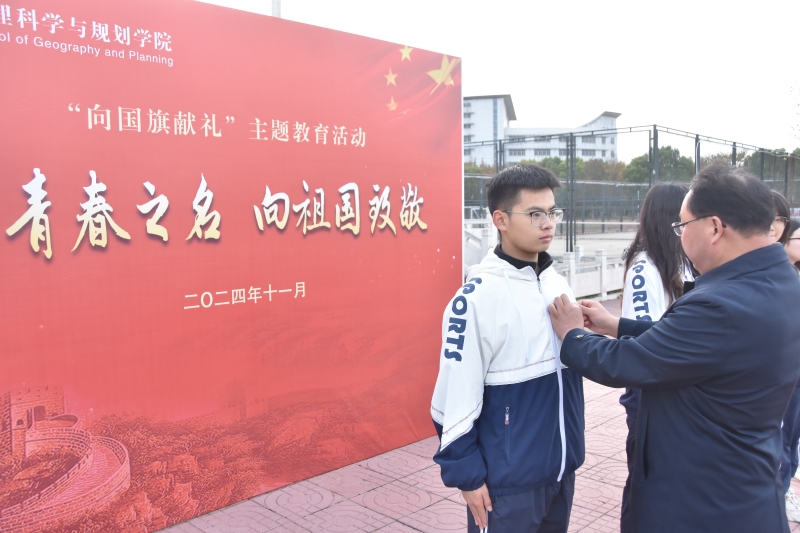 殷成志和周亚芳为项阳等五位新发展团员代表佩戴团徽,新发展团员代表进行庄严入团宣誓。国家奖学金获得者、院学生会主席团成员朱诣高同学分享了他的成长故事及对责任担当的感悟。他鼓励同学们积累知识与技能,培养责任与担当,保持自信与乐观,为实现祖国的繁荣富强贡献自己的力量。