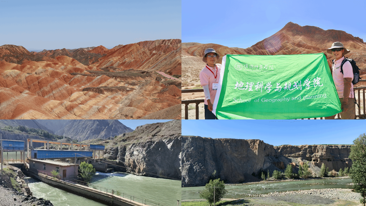 7月25日上午,实习队伍来到张掖七彩丹霞景区,与在祁连山看到的炭山岭丹霞地貌进行比较并得出结论,张掖“七彩丹霞”实际上是一种极为特殊的地貌而不是丹霞地貌。其色彩的形成是不同化学物质氧化还原作用所导致,且张掖七彩丹霞地貌特征与典型丹霞地貌不符,因此为张掖丹霞地貌取名为“红山湾地貌”。下午,实习队伍来到黑河的重要河口莺落峡,思考讨论了祁连山构造运动所导致的断层构造形成过程。同时认识了该水电站对于下流水资源调配的重要作用。