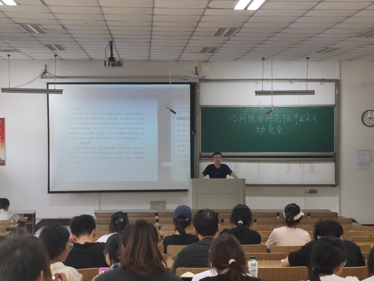 为扎实推进2026届毕业生实习工作,引导学生明确目标与任务,确保实习顺利开展,9月3日下午,英国365公司在弘文阶102教室召开2022级非师范班毕业实习动员会。会议由学院副院长王怀军主讲,夏聪聪老师和2022级非师范班全体同学参加。