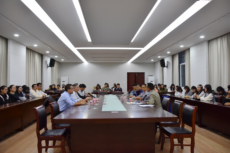焦校长在讲话中,首先对李勇研究员及其团队莅临淮师进行讲学交流表示热烈的欢迎,对其受聘我校兼职教授和对我校长期以来的关心支持,尤其是对我校城环学院申报江苏省塘库智能监测与生态环境管控工程研究中心给予的大力帮助表示最衷心的感谢。其次,焦校长从学校概况、是一个具有较长办学历史、是一个具有鲜明特色、是一个具有文化底蕴、是一个具有一定地位的高校等方面向李勇团队和与会师生介绍了学校情况。最后,焦校长对城环学院的发展表示充分肯定,并对中科院亚热带农业生态研究所与我校的长期合作提出殷切期望。
