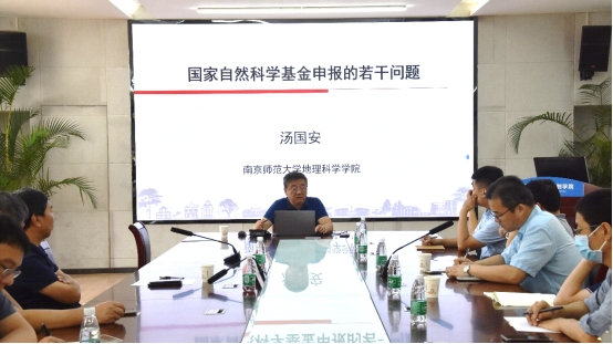 汤国安教授直入主题,结合具体案例分析,从“申报准备与选题”、“如何写好申请书”和“其他注意事项”三个方面深度细致剖析如何做好基金申报。他指出,在基金申报前,正确的思想准备和良好的备题意识是基础,要坚持对国内外的研究现状的常态跟踪与凝练。他强调,选题突出科学问题、表达反复推敲和深入领会申报指南的精神是成功的关键。申报论述要有理有据、简明扼要,并从评委的角度,以逆向的思维来分析在申报中要注意的问题。