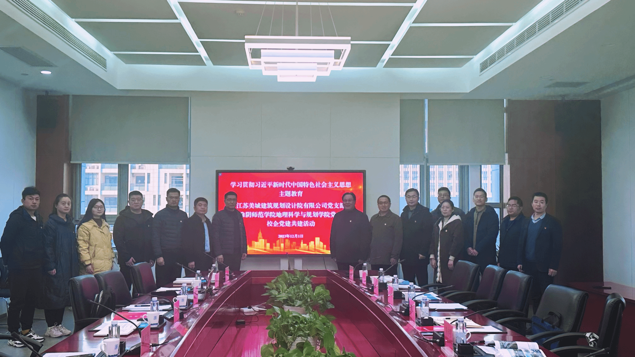 为深入学习贯彻习近平新时代中国特色社会主义思想主题教育,进一步深化校企合作,2023年12月1日下午,学院党政领导班子带队前往江苏美城建筑规划设计院有限公司开展党建共建活动。学院党政领导班子、各党支部书记、江苏美城建筑规划设计院有限公司城乡规划院院长徐国正、景观室内所所长张田伟、BIM所所长刘敏、城乡规划院主任规划师张晓恬、城乡规划院副主任规划师王岩等同志参加交流活动。
