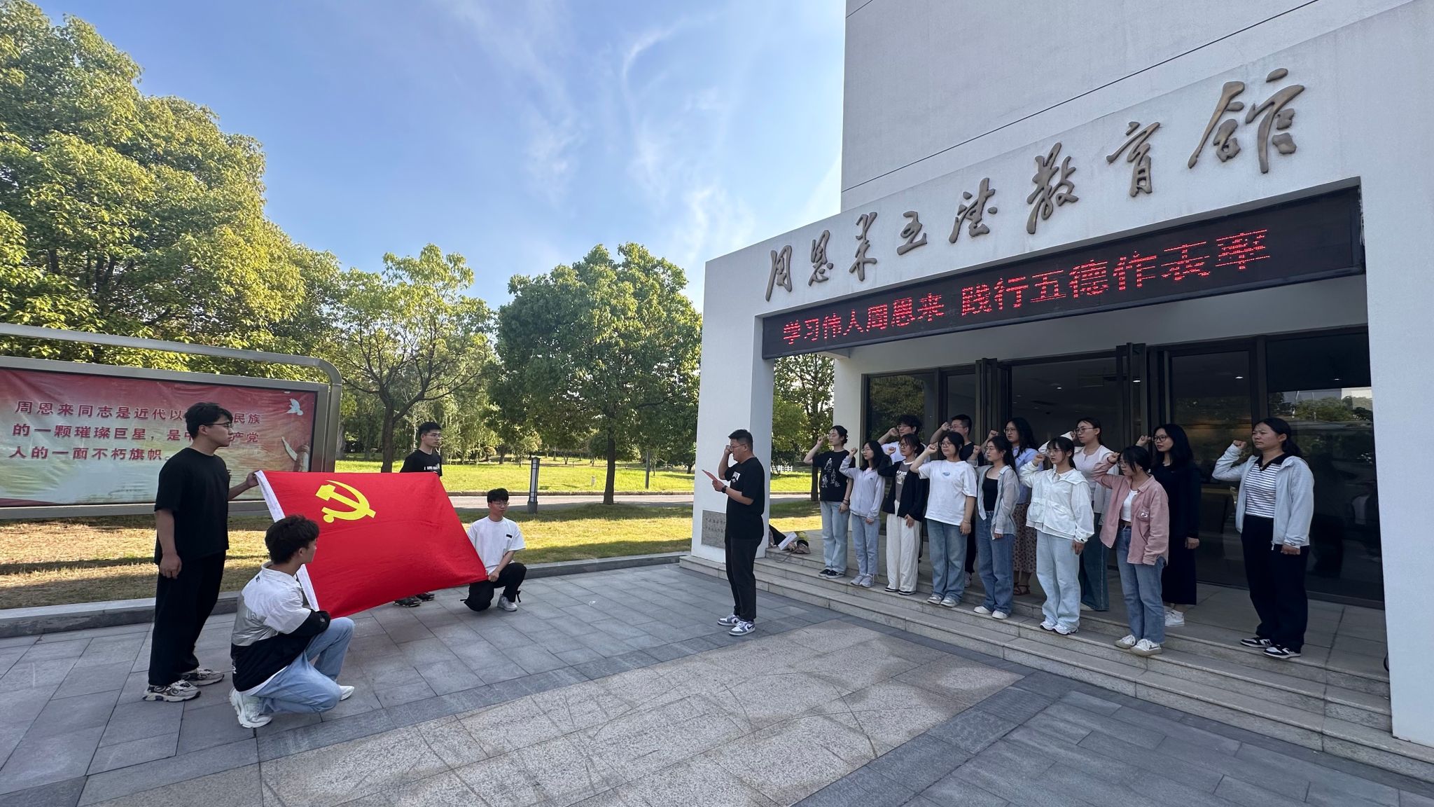 新发展党员在“五德”教育馆前进行了庄严的入党宣誓仪式。大家高举右拳,誓言声声、字字铿锵。大家纷纷表示,今后将时刻以周恩来同志为榜样,坚守党的纪律和规矩,加强学习、提升素质、强化担当,为推动学校、学院各项事业的高质量发展贡献自己的力量。